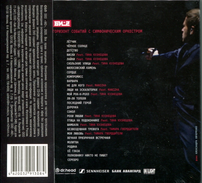 Запись концертной программы "Горизонт событий с оркестром" группы Би-2, выпущенная в 2020 году. Концерт с симфоническим оркестром Москвы "Русская филармония" прошел с аншлагом 17 мая 2019 года в Crocus City Hall. Продолжение получили в оркестровой аранжировке все успешные песни, собранные в альбом и концертную программу. Сценография стала отдельным предметом гордости. Ожившую готику подчеркнули костюмы артистов и музыкантов, а также монументальный бархатный задник с круглым экраном-зеркалом.