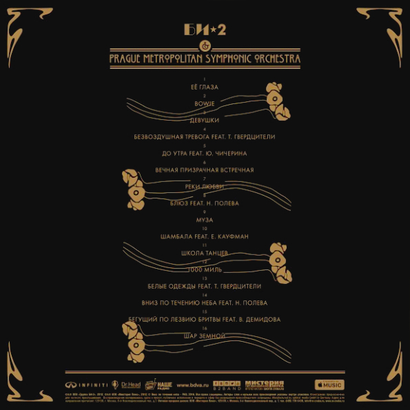 Альбом группы Би-2, записанный с оркестром в 2013 году: 16 композиций в аранжировке Геннадия Корнилова были исполнены Пражским симфоническим оркестром вместе с бессменным дирижёром группы Феликсом Арановским. С момента выхода первого альбома Би-2 с Симфоническим оркестром МВД России прошло три года, за это время в дискографии группы накопилось достаточно студийного материала, чтобы можно было повторить интересный и, без ложной скромности, невероятно успешный творческий эксперимент - записать новую пластинку с оркестром. Теперь альбом "Би-2 & Prague Metropolitan Symphonic Orchestra" доступен на виниле.