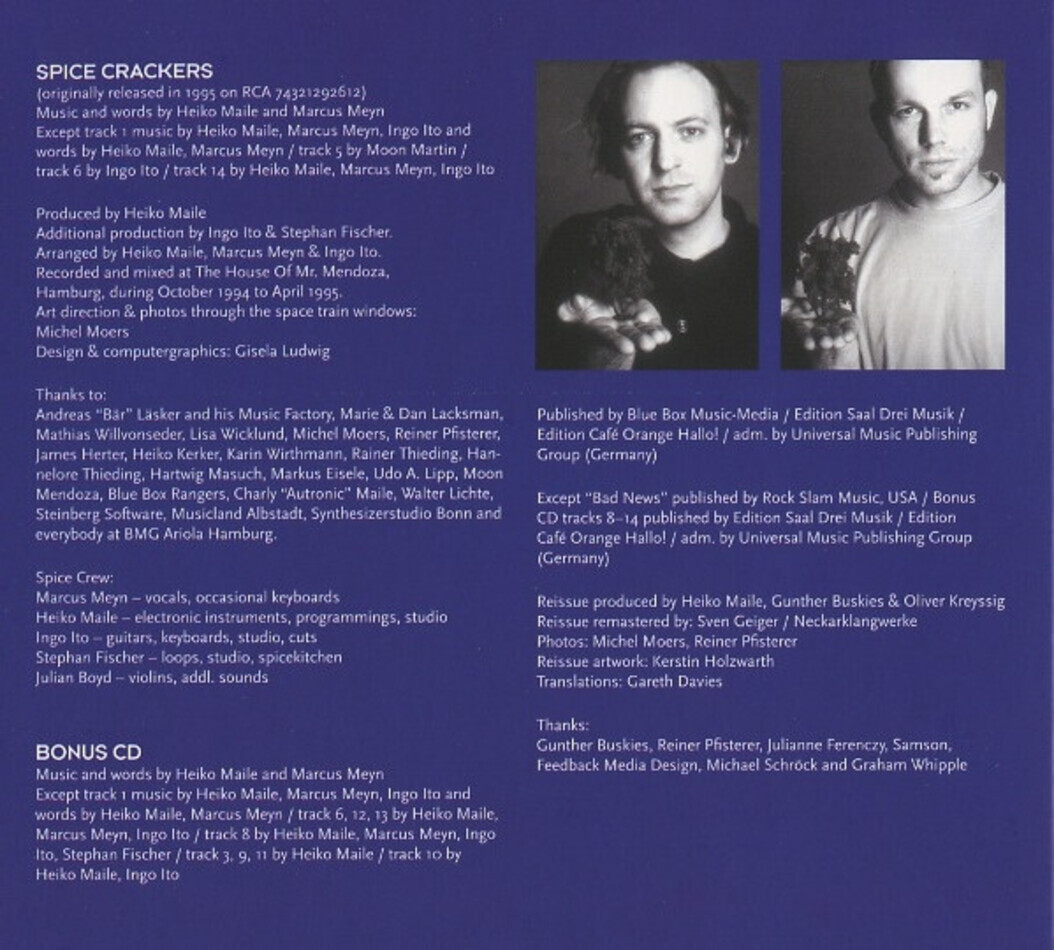 "Spice Crackers" - пятый студийный альбом немецкого New Wave коллектива Camouflage, выпущенный в 1995 году. Новый контракт группы с BMG Germany предоставил им полную творческую свободу, позволив им использовать произведения, изначально написанные для их неудавшегося оперного проекта, и сделать их гораздо более экспериментальными, а иногда даже вдохновлёнными научно-фантастическими фильмами.