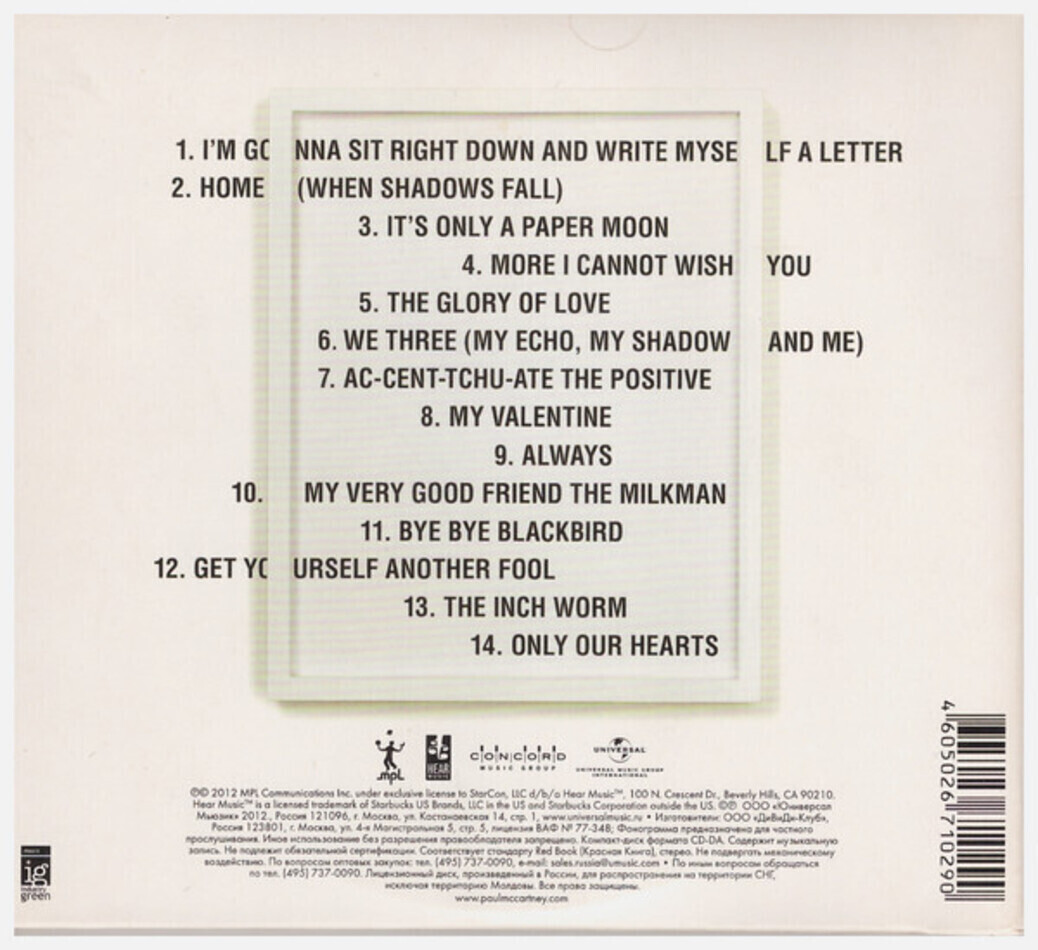 "Kisses On The Bottom" - студийный альбом Пола Маккартни, выпущенный в 2012 году. Релиз стал первым полноценным студийным сольным альбомом сэра Пола с 2007 года. Большая часть песен на этом альбоме - кавер-версии классических поп- и джазовых стандартов, записанные музыкантом в спокойной и нежной манере. Среди приглашенных музыкантов, работавших над этим альбомом: Эрик Клэптон, Диана Кролл, Стиви Уандер, а также джазовый продюсер Тони ЛиПума, сотрудничавший с Майлзом Дэвисом и Барброй Стрейзанд.
