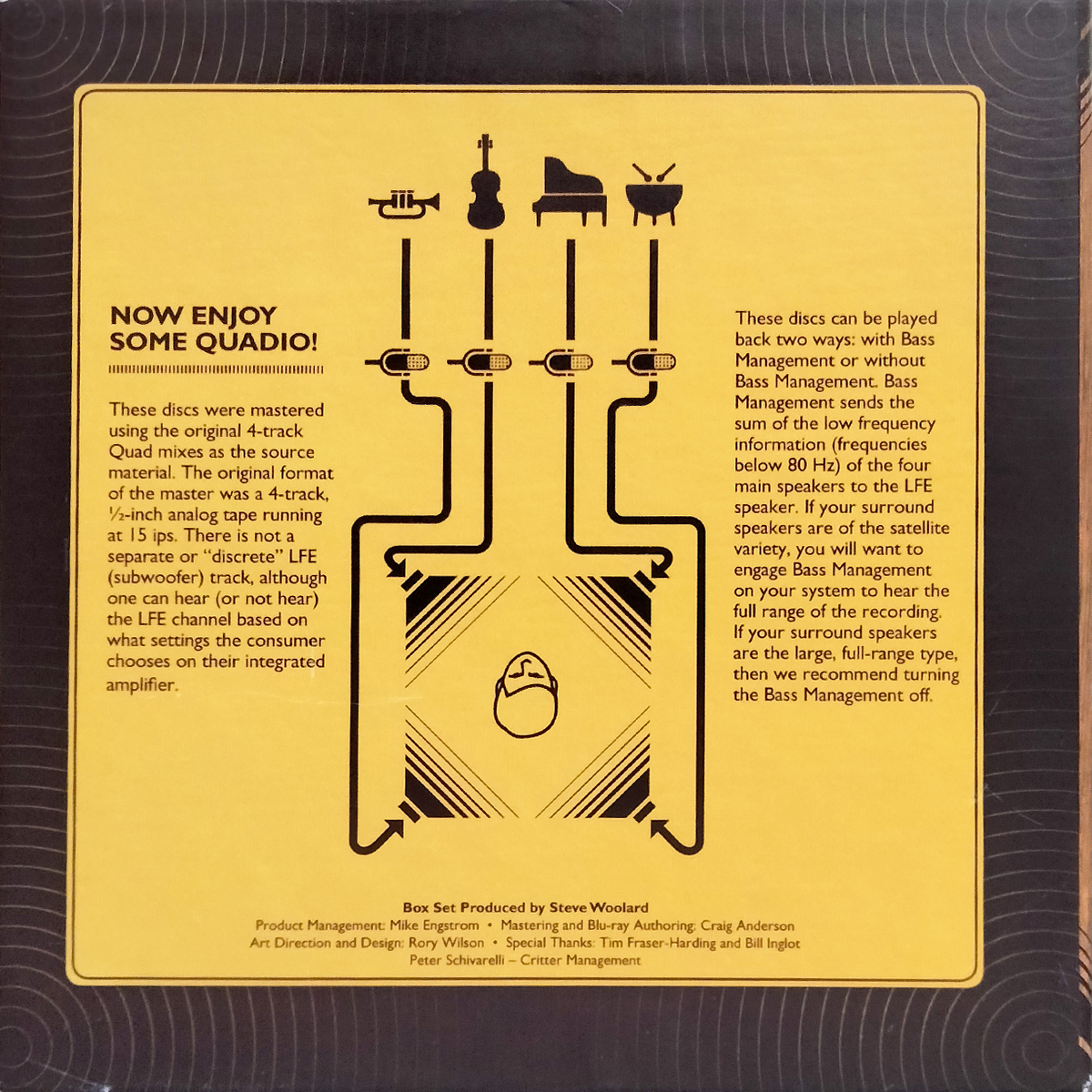 Ремастированное бокс-сет издание на 9 Blu-ray Audio дисках в упаковках диджипак. Релиз серии Quadio. Звучание - стерео и квадрофоническое. Открытый бокс со следами износа. Диджипаки, картонные конверты, диски в идеальном состоянии.