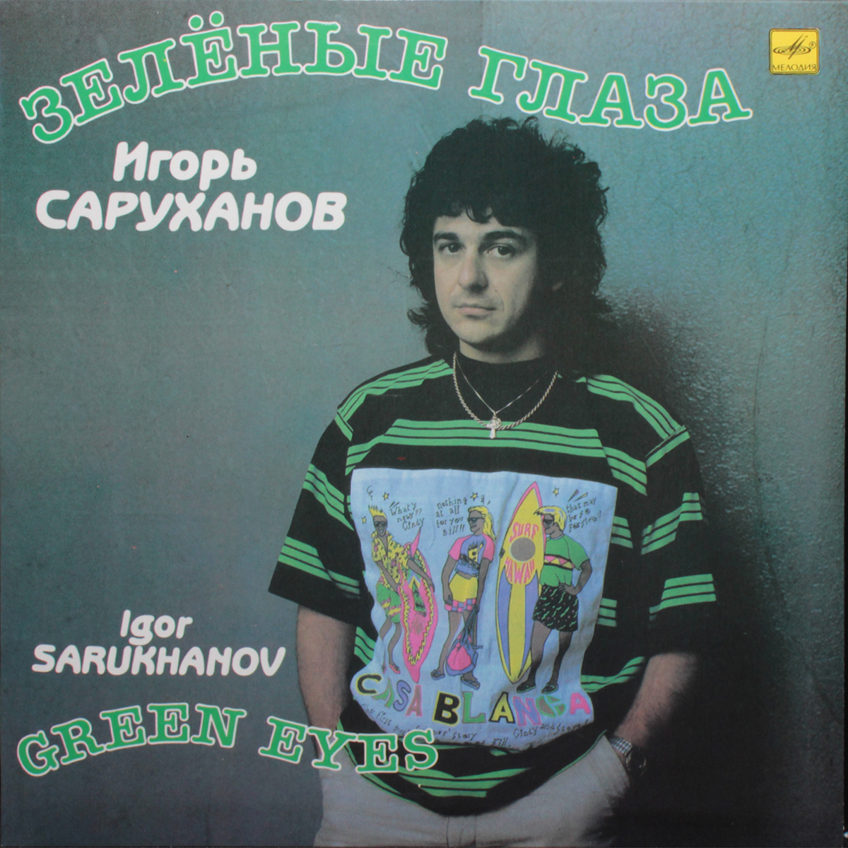 Зелёные Глаза - студийный альбом советского и российского певца Игоря Саруханова, вышедший в 1990 году. Альбом записывался в 1989 году. Издание на чёрном виниле в ламинированном конверте. Конверт и винил в состоянии, близком к идеальному. Лейблы красные. Игорь Саруханов - советский и российский поп-рок-певец, гитарист, композитор и поэт. Заслуженный артист России (1997), член Союза писателей России, член Союза композиторов России.