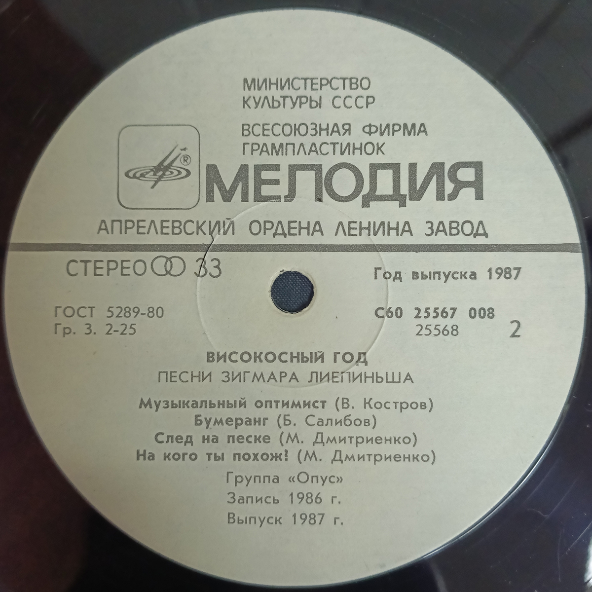 "Високосный год" - студийный альбом советского вокально-инструментального ансамбля "Опус", выпущенный в 1987 году. Музыканты исполняют песни латвийского композитора Зигмара Лиепиньша. Советское издание 1987 года.