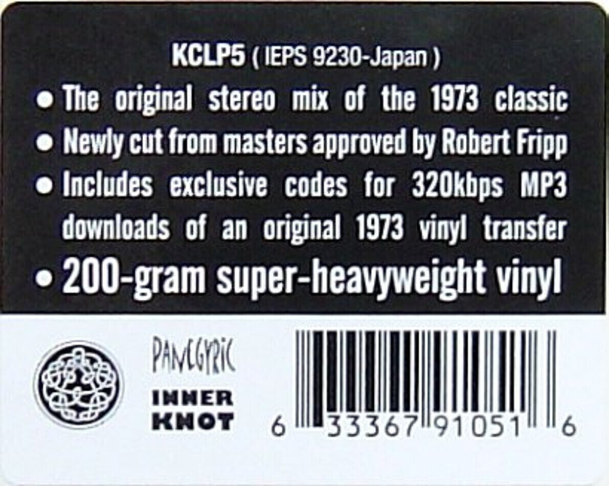 Ремастированное переиздание 2013 года представлено на 200-граммовом виниле черного цвета. Ремастеринг одобрен лично Робертом Фриппом. Содержит код на загрузку mp3 версии альбома, а также вкладку с текстами песен. Конверт в запечатывающей плёнке. Конверт и винил в состоянии, близком к идеальному.