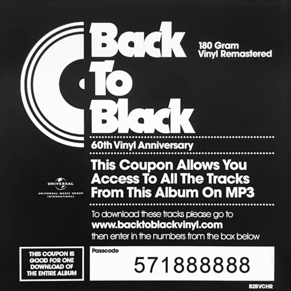 Ремастированное переиздание 2008 года представлено на 180-граммовом виниле черного цвета. Содержит код для скачивания MP3-версии альбома. Конверт в запечатывающей плёнке. Открытый альбом. Конверт в состоянии, близком к идеальному, винил в идеальном. Релиз серии Back To Black.