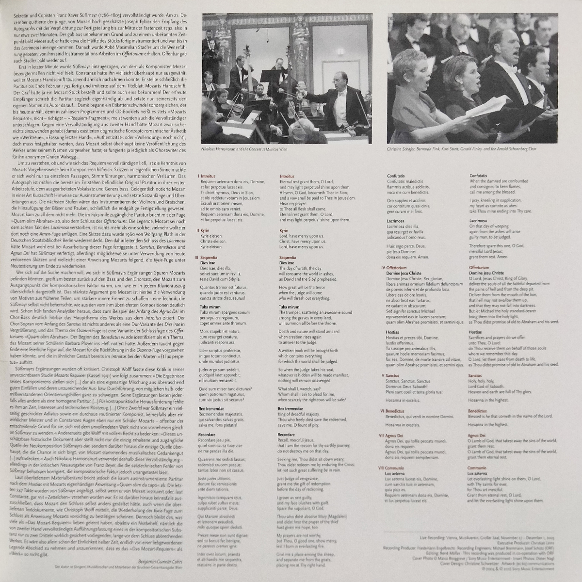 "Mozart: Requiem" - концертная запись "Реквиема" Моцарта в исполнении великого австрийского дирижера Николауса Арнонкура, выпущенная в 2004 году. Запись сделана в 2003 году, Вена, Musikverein, Grosser Saal. Оркестр - Concentus Musicus Wien.