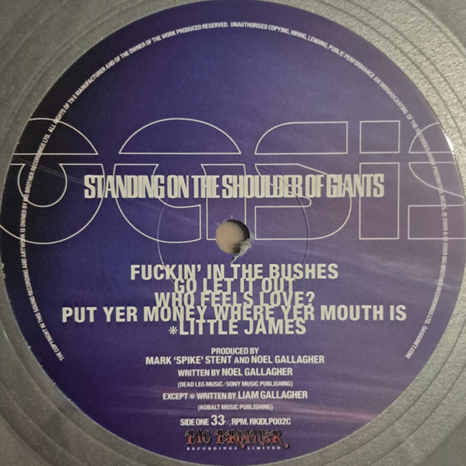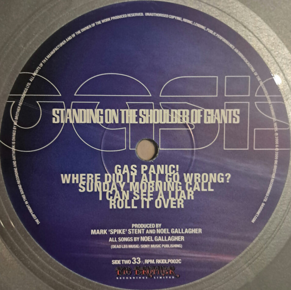 "Standing On The Shoulders Of Giants" - четвертый студийный альбом британской рок-группы Oasis, первоначально выпущенный в 2000 году. Альбом представляет собой эффективную психоделическую запись, с комплектами партий барабанных петель, сэмплов, электро-ситаров, меллотронов, синтезаторов и конечно же гитар, что делает его более экспериментальным, в связи с влиянием электроники и психоделического рока. Такие песни, как "Go Let It Out", написанная под влиянием индийской музыки "Who Feel Love?" и прогрессивная "Gas Panic!" является основными примерами изоляции группы от их более раннего стиля.
