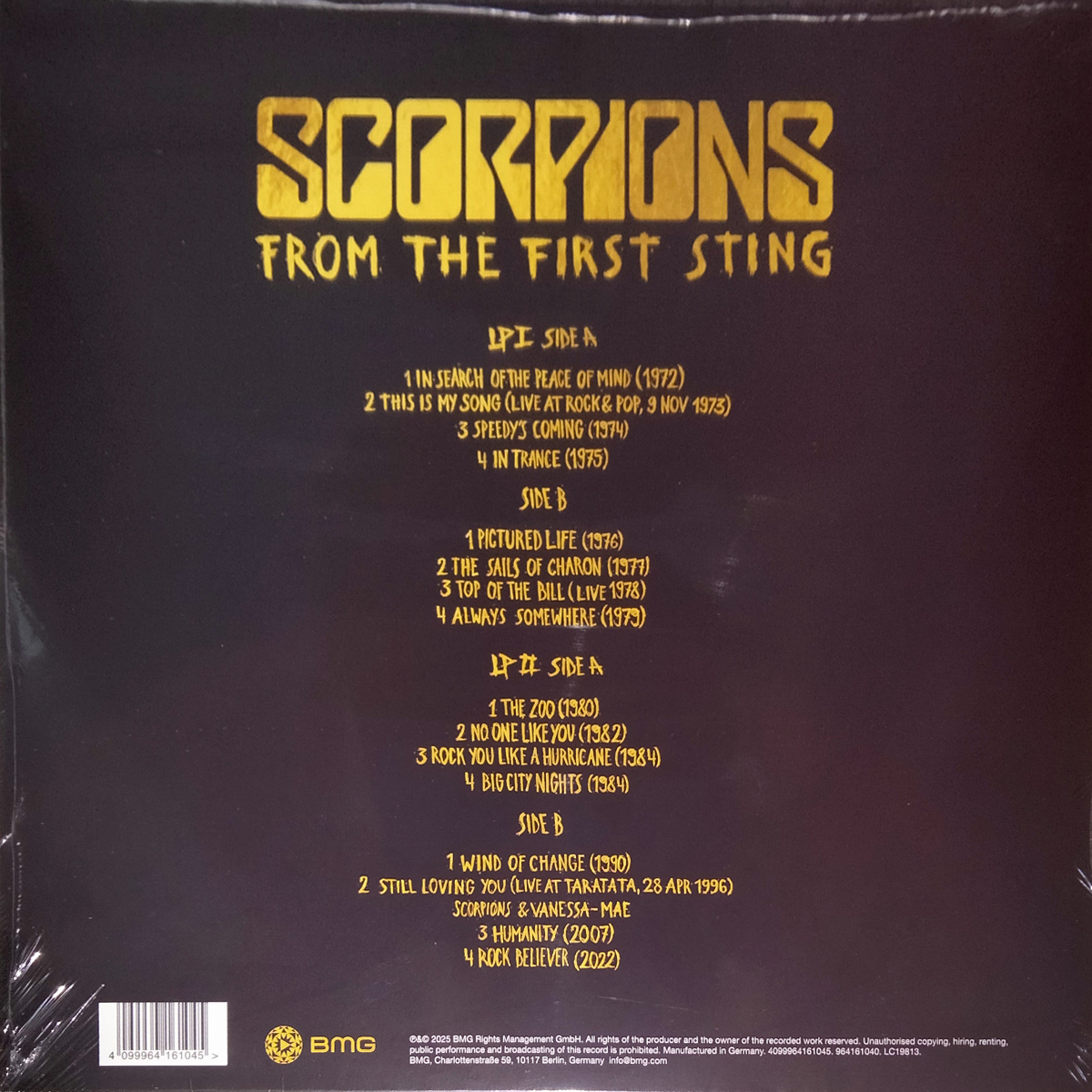 "From The First Sting" - сборник немецкой рок-группы Scorpions, выпущенный в 2025 году. В сборник вошли 16 тщательно отобранных треков, демонстрирующих десятилетия работы группы, включая 2 ранее не издававшиеся версии песен. Содержит композиции, записанные в период с 1972 по 2022 год.