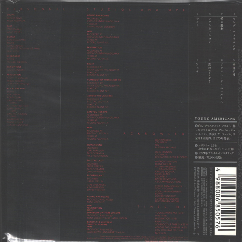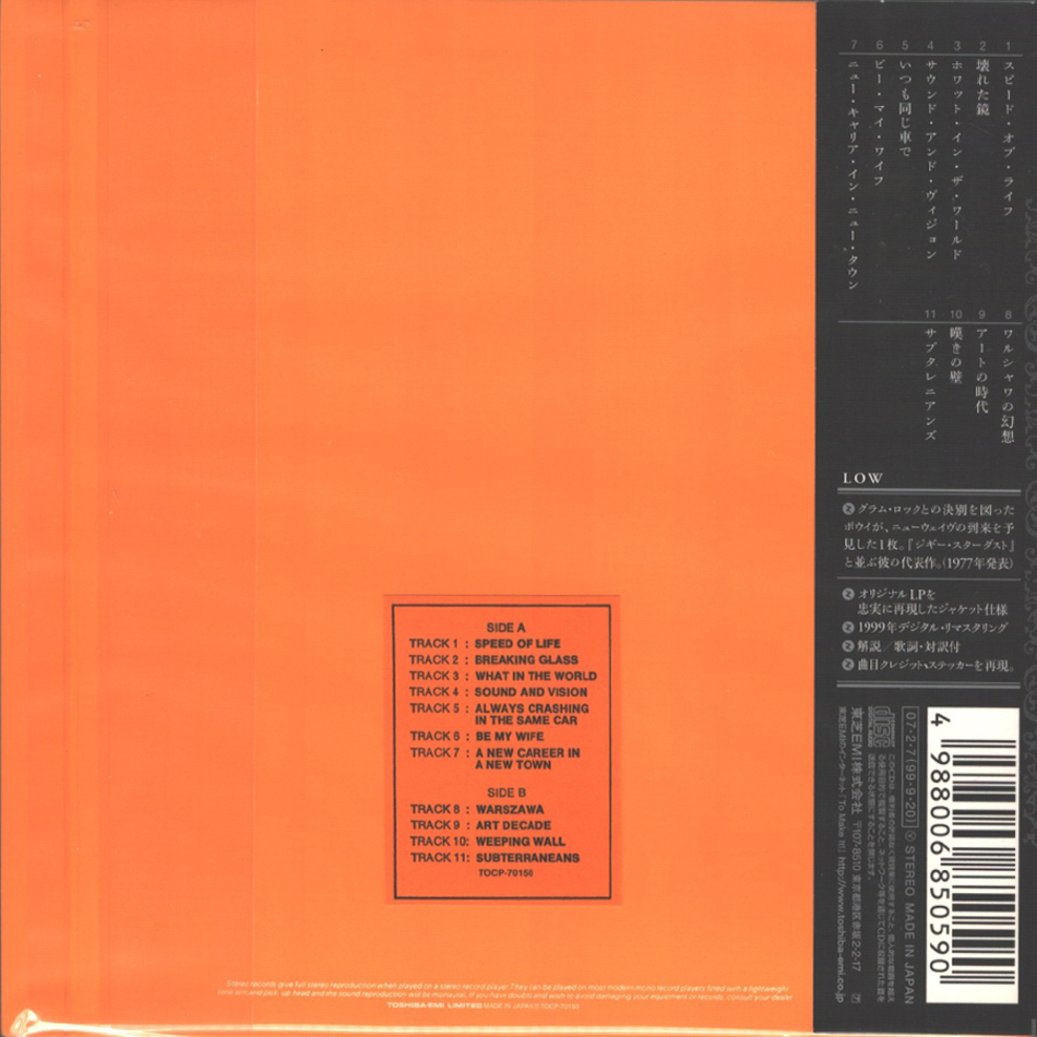 Японские ремастированные переиздания 2007 года на 17 Mini LP CD. Промо-бокс в комплекте. Релизы серии David Bowie Paper Jacket Series. Открытый бокс со следами износа. Все диски и буклеты в идеальном состоянии.