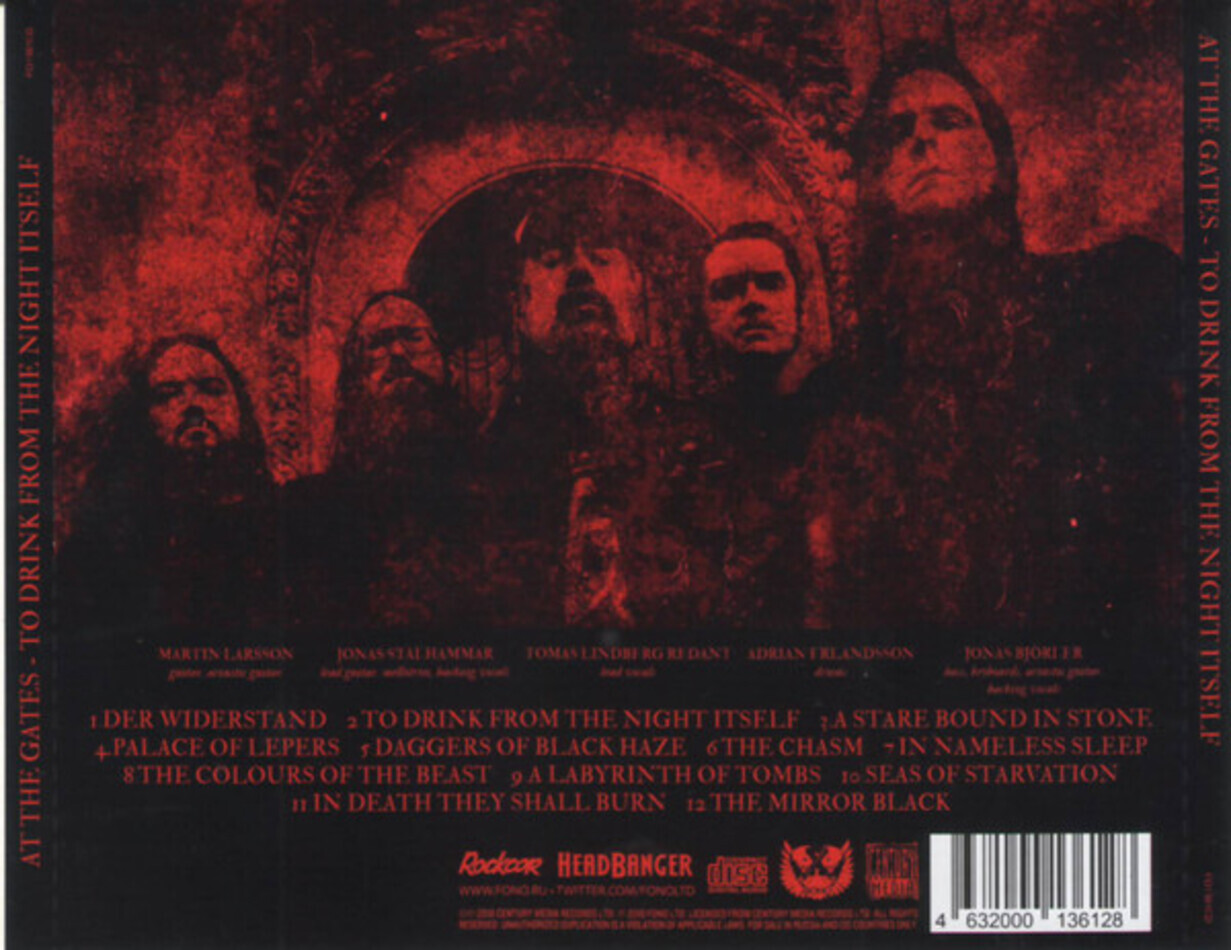 "To Drink from the Night Itself" - шестой студийный альбом шведской группы At The Gates, первоначально выпущенный в 2018 году. Продюсированием "To Drink from the Night Itself" занимался Расс Расселл (Russ Russell; работал с Napalm Death, The Haunted, Dimmu Borgir) в британской студии Parlour Studios. В записи альбома принял участие гитарист King Diamond Энди ЛаРок (Andy LaRocque), записавший соло в песне "In Nameless Sleep".