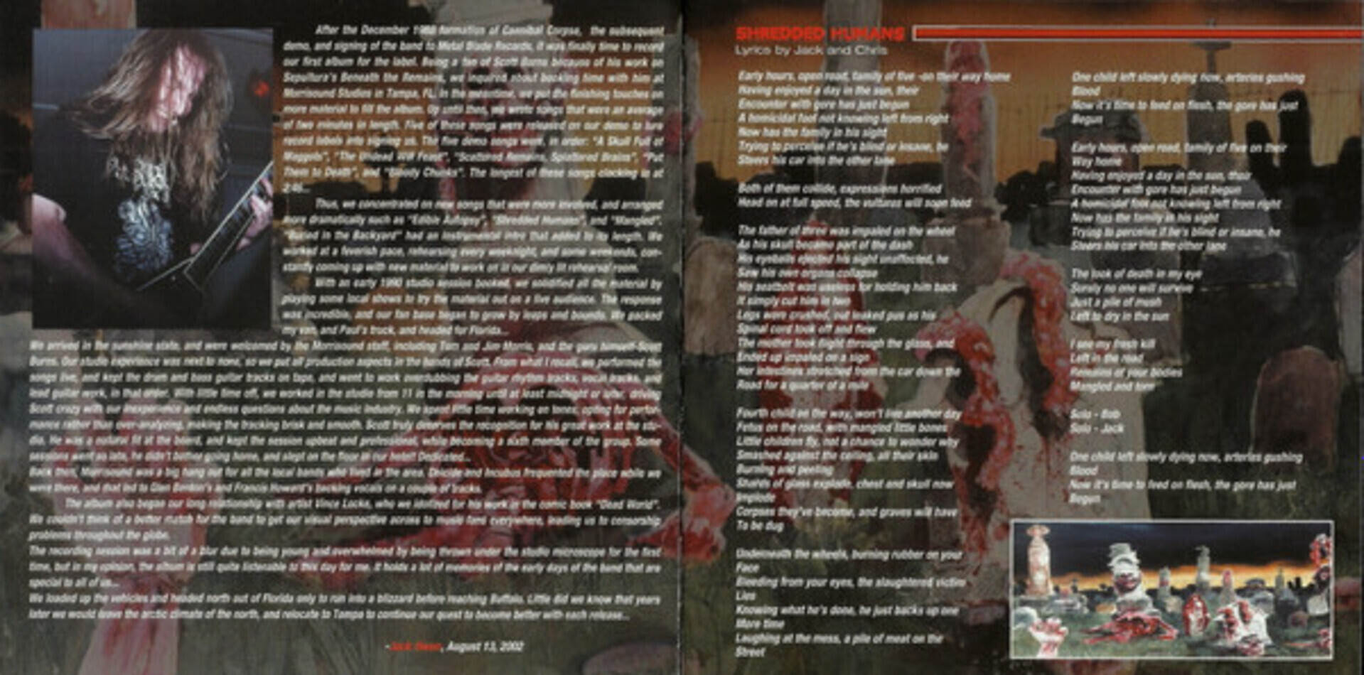 Cannibal Corpse - американская дэт-метал группа, образованная в 1988 году в штате-Нью-Йорк. Стиль группы является продолжением трэш-метала таких групп, как Slayer, Kreator и Sodom и дэт-метал Morbid Angel, Death. Содержанием песен являются сюжеты, взятые из фильмов ужасов о людоедах, зомби и разных убийцах. Хотя продажа альбомов Cannibal Corpse в некоторых странах попадала под запрет, общее количество проданных пластинок к 2015 году составило более двух миллионов экземпляров, поэтому Cannibal Corpse считается самой коммерчески успешной группой в стиле дэт-метал.