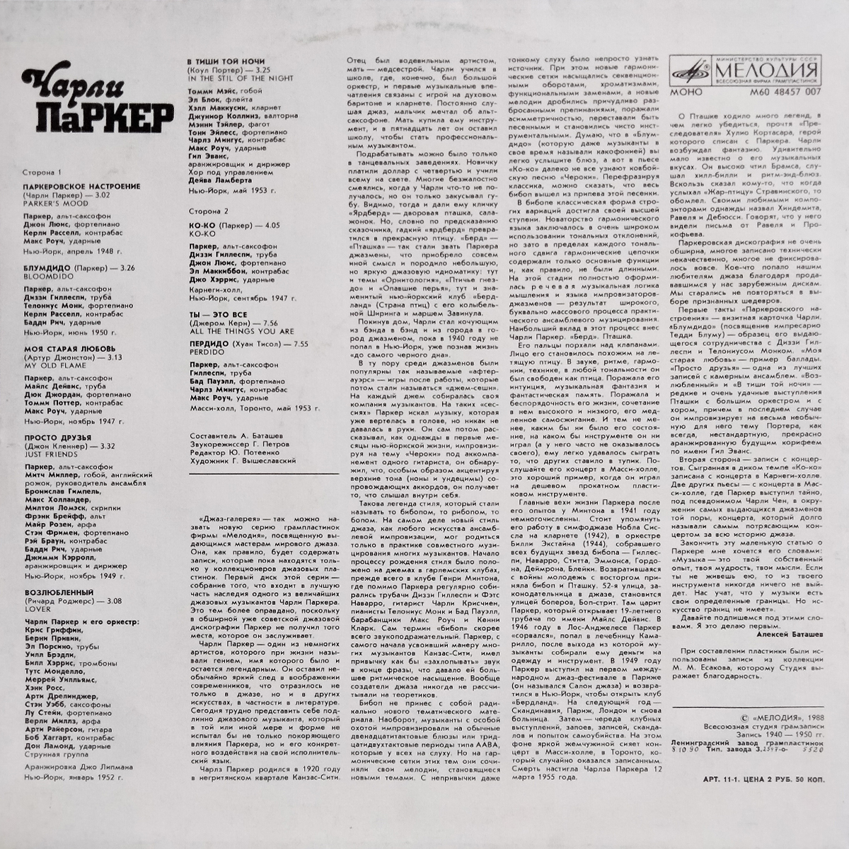 "Чарли Паркер" - советский сборник композиций американского джазового саксофониста Чарли Паркера, вышедший в 1988 году. Записи 1940-1950-х годов. В записи также участвовал оркестр Паркера.