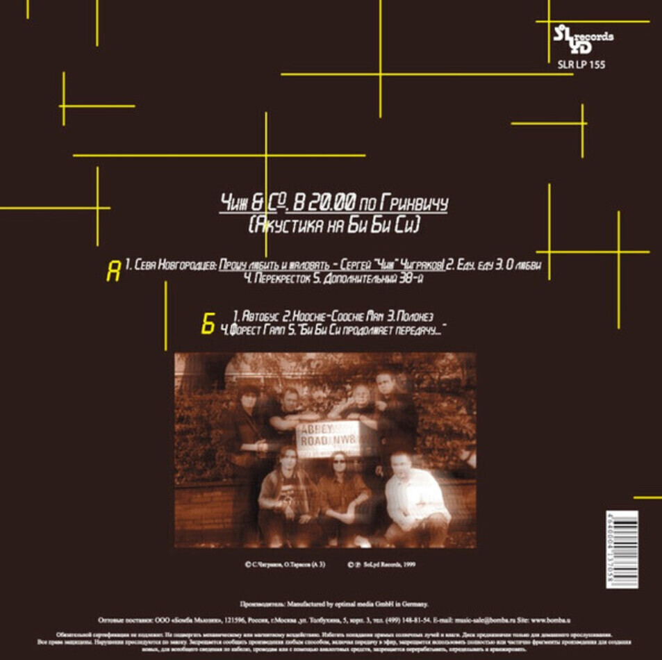 "В 20.00 По Гринвичу" - концертный альбом группы Чиж & Со, выпущенный в 1999 году. На нем представлено выступление коллектива на передаче Севы Новгородцева на ВВС в 1998 году. Обложка выполнена в виде фото из архива группы Чиж & Co. Звукорежиссер - Юрий Морозов.