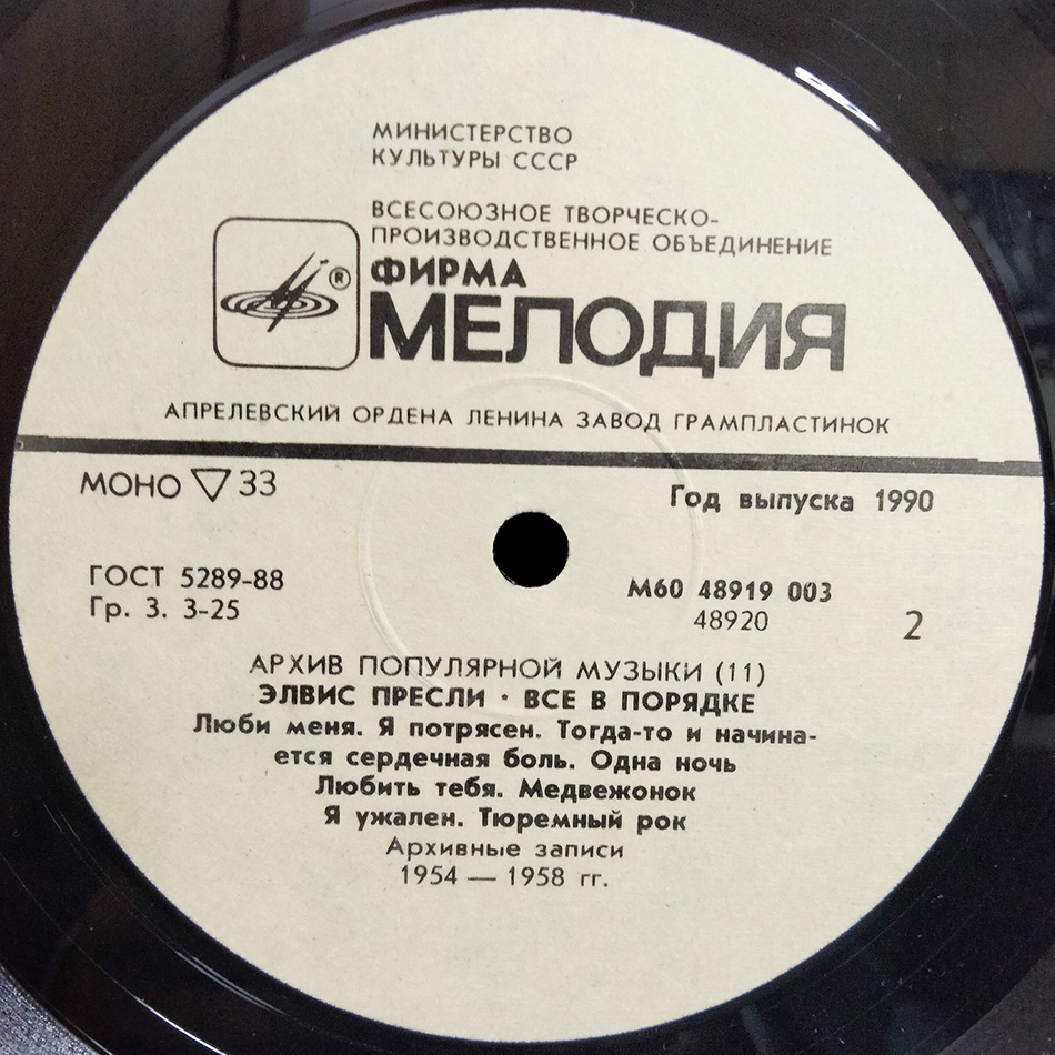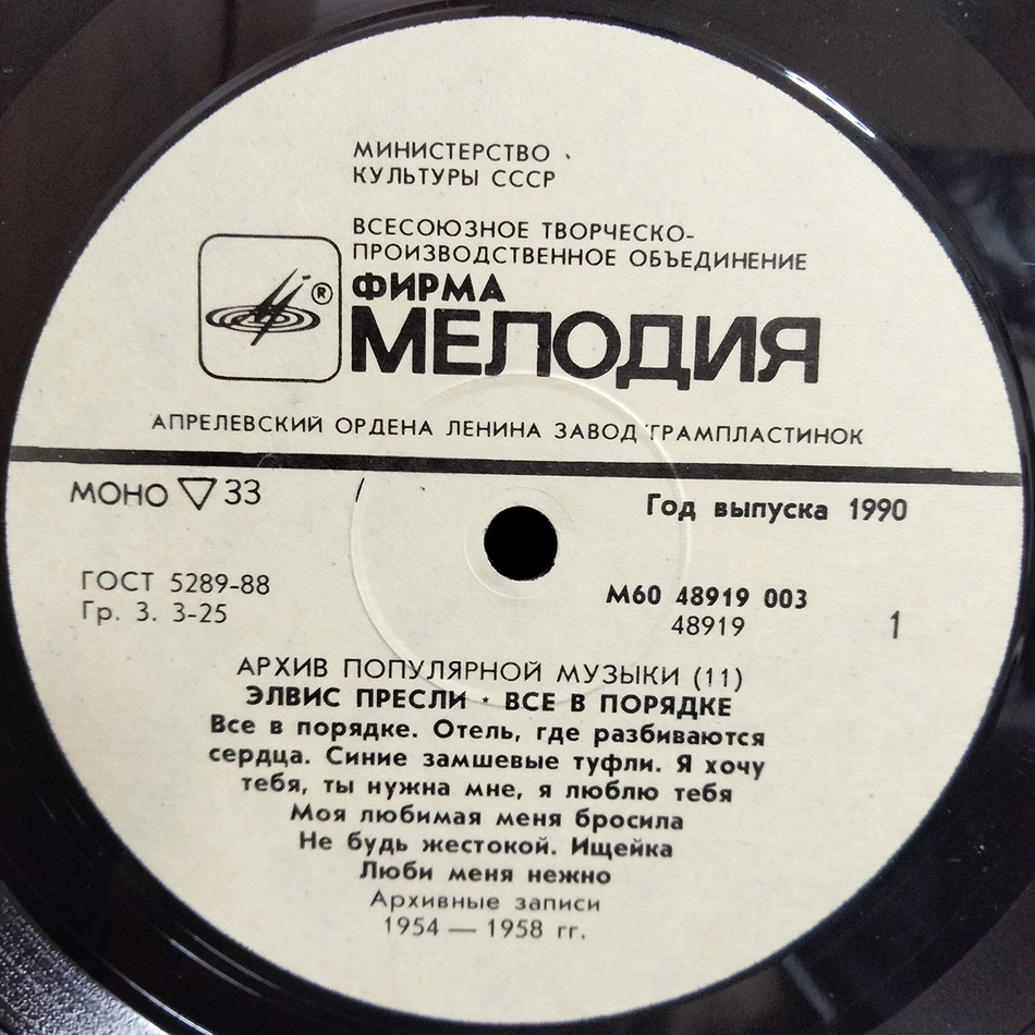 Советское повторное издание 1990 года на чёрном виниле в моно звучании. Конверт и винил в состоянии, близком к идеальному. Лейблы белые. В таком виде сборник выходил только в СССР.