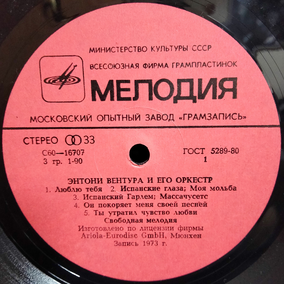 Советское переиздание 1981 года на чёрном виниле с альтернативной обложкой. Ламинированный конверт. Конверт и винил в состоянии, близком к идеальному. Лейблы красные.