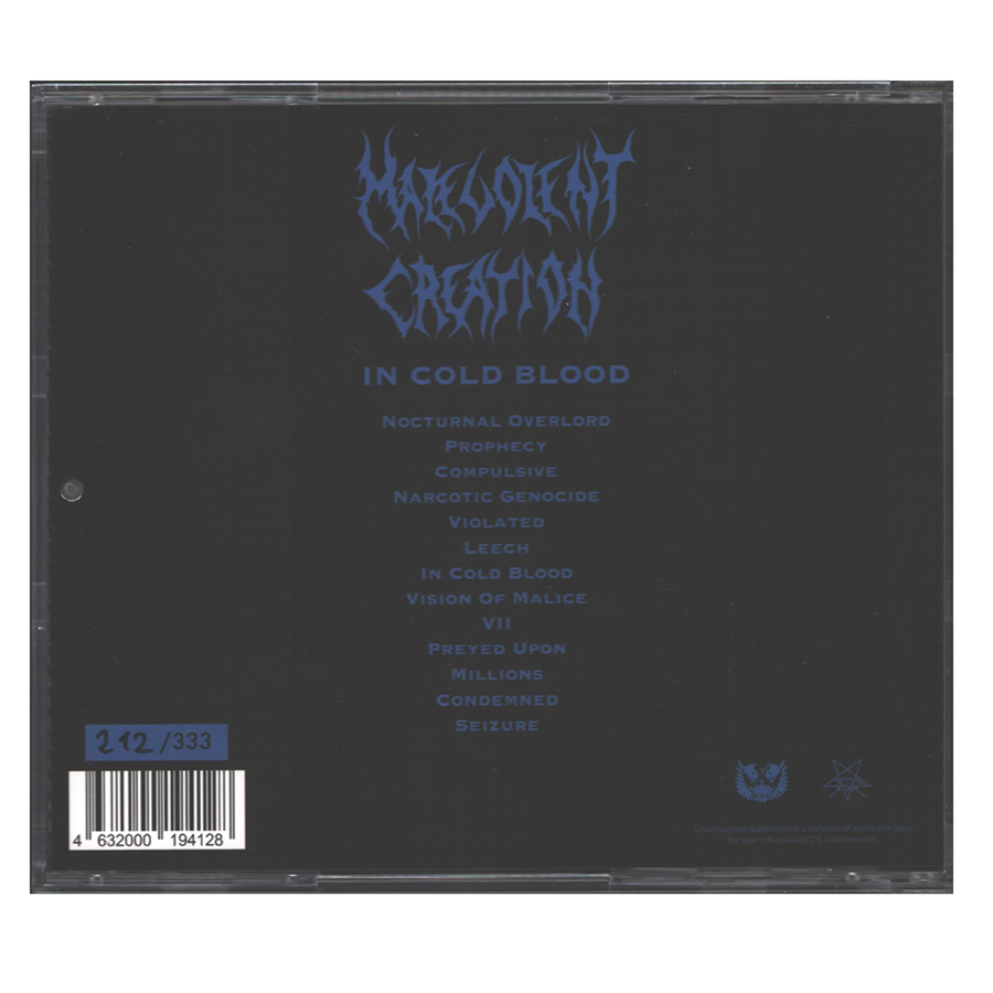 "In Cold Blood" - пятый студийный альбом американской метал-группы Malevolent Creation, выпущенный в 1997 году. Альбом был записан и смикширован на студии "Morrisound Recording" в Тампе, штат Флорида, США. Продюсером альбома выступил легендарный Скотт Бёрнс. В записи альбома принимали участие Фил Фашиана, Джейсон Блаковиц, Дерек Родди и Джон Пол Соарс. Одну из песен для альбома написал Джон Рубин из Monstrosity. "In Cold Blood" по сей день считается одним из самых холодных, тяжёлых и беспощадных альбомов в классическом death metal.