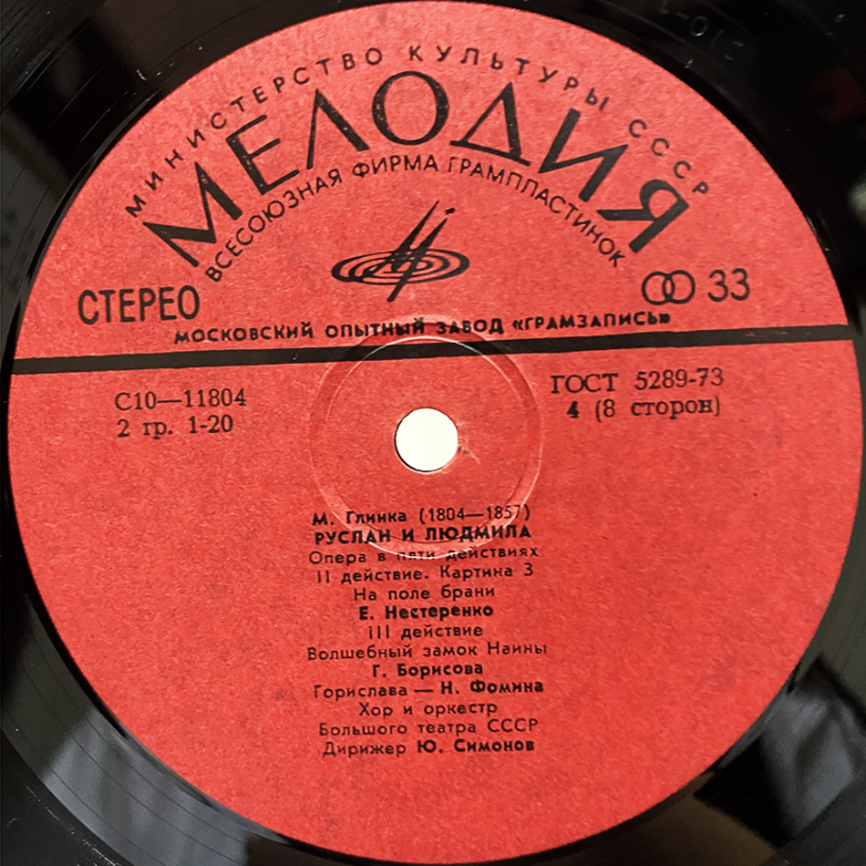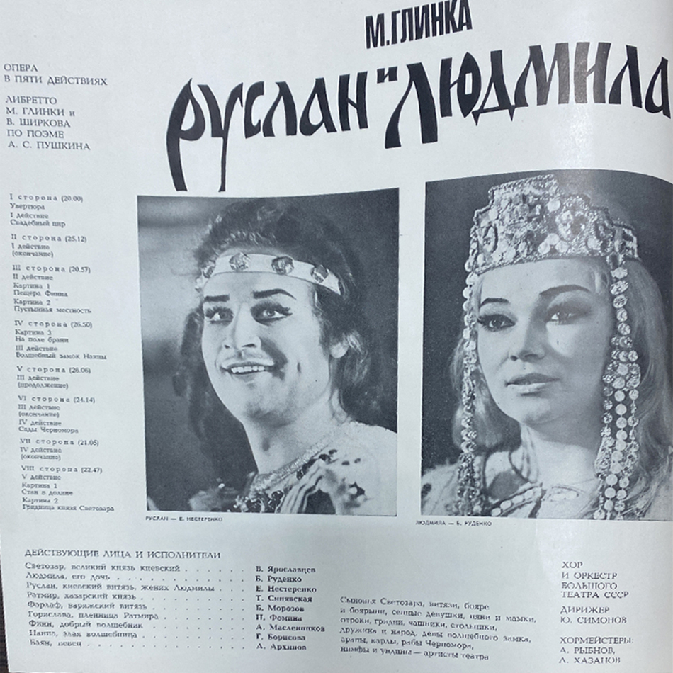 "Руслан И Людмила" - запись оперы Михаила Ивановича Глинки в 5 действиях, выпущенная в 1978 году. Либретто Валериана Ширкова, Константина Бахтурина и Михаила Глинки при участии Н. А. Маркевича, Н. В. Кукольника и М. А. Гедеонова по одноимённой поэме Александра Сергеевича Пушкина с сохранением стихов подлинника. Оркестр - Оркестр Большого Театра СССР. Композитор - Михаил Глинка. Дирижер - Юрий Симонов.