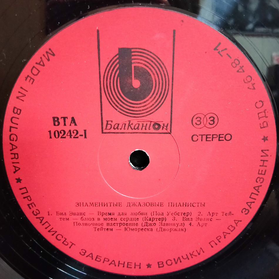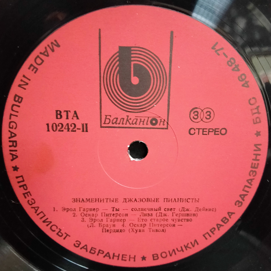 Болгарское издание на чёрном виниле. Конверт и винил в состоянии, близком к идеальному. Лейблы красные. В таком виде сборник выходил только в Болгарии.