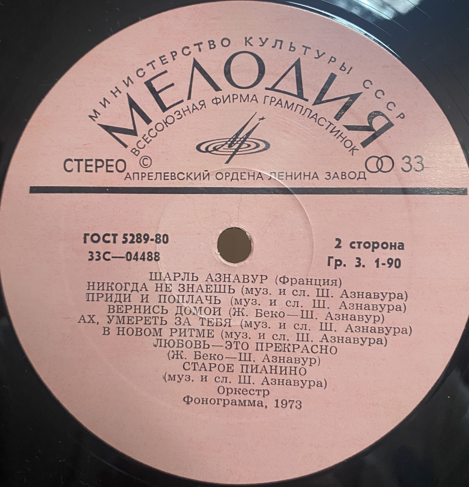 Советское издание 80-х годов на чёрном виниле. Конверт и винил в состоянии, близком к идеальному. Лейблы розовые.