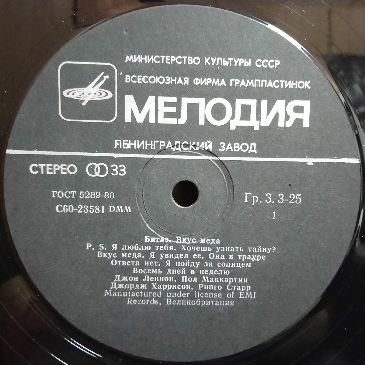 Советское издание на чёрном виниле. Конверт в состоянии близком к идеальному. Винил в идеальном состоянии. Лейблы черные.