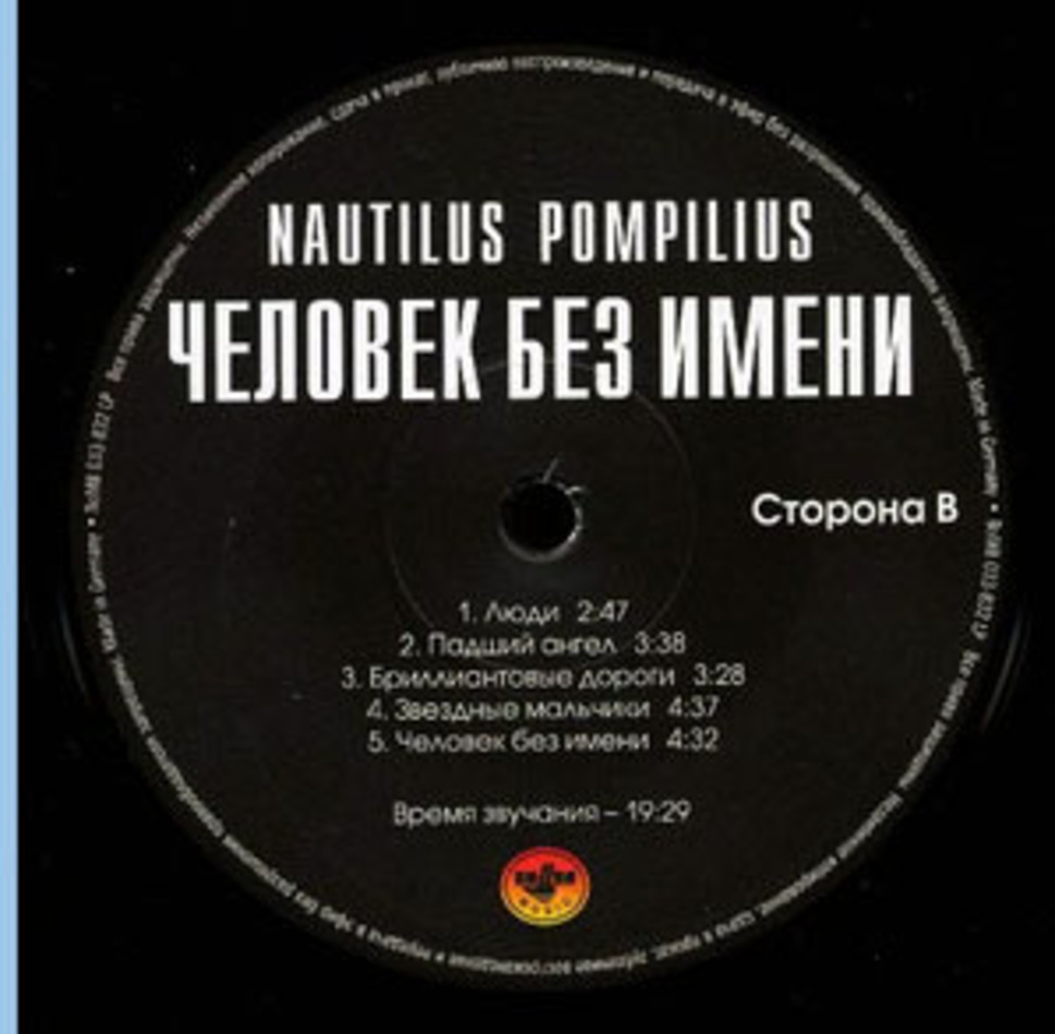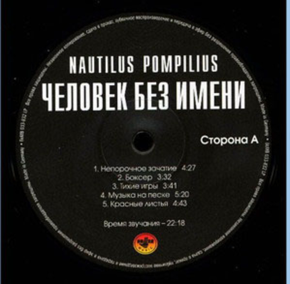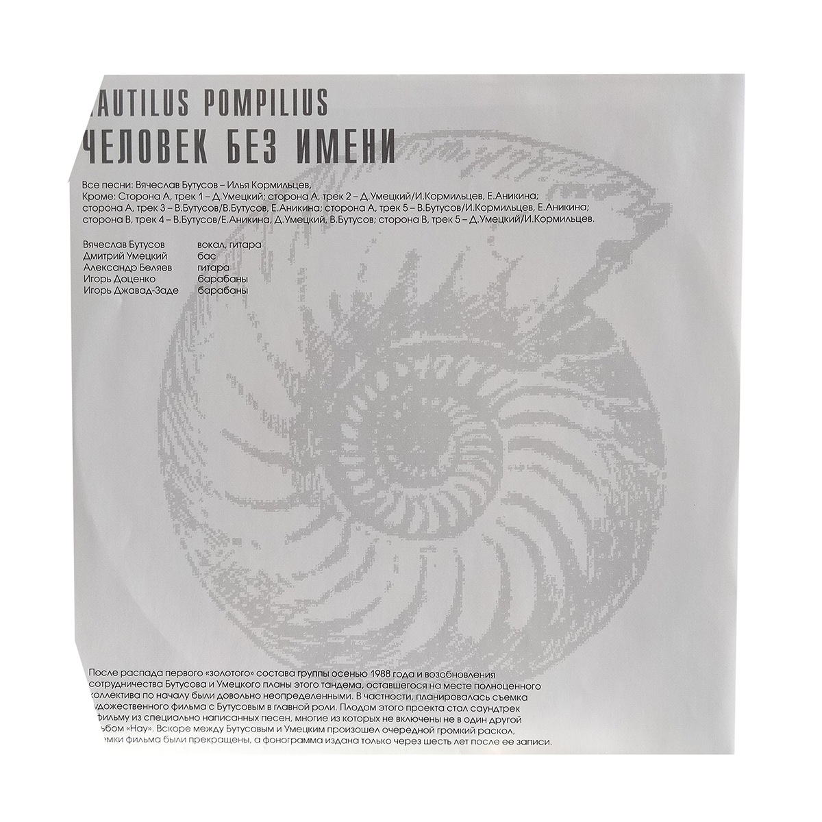 "Человек Без Имени" - студийный альбом рок-группы Nautilus Pompilius, выпущенный в 1995 году. Альбом, создававшийся как саундтрек к художественному фильму с Вячеславом Бутусовым в главной роли. Фильм так и не был снят, но альбом занял достойное место в дискографии Nautilus Pompilius.