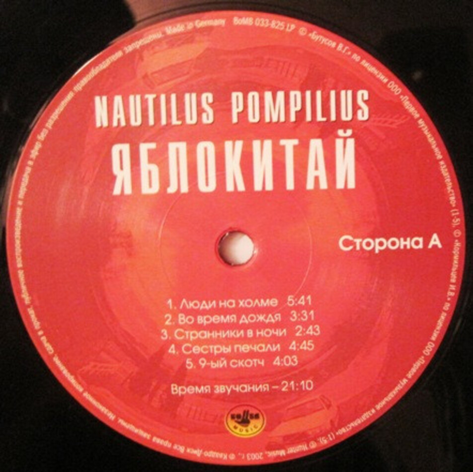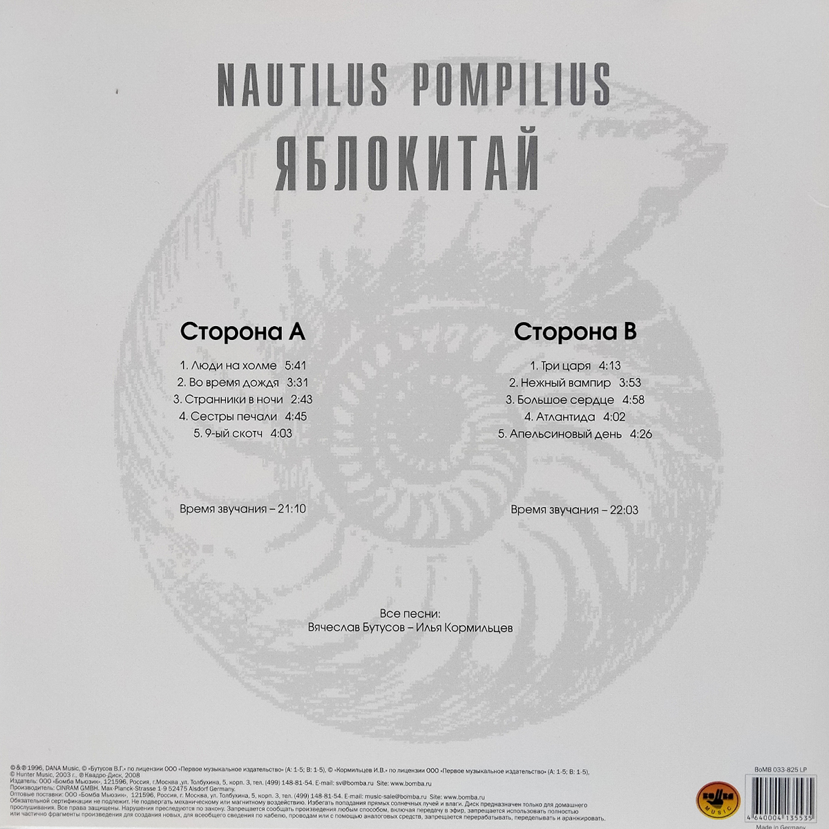 "Яблокитай" - последний номерной студийный альбом рок-группы Nautilus Pompilius, выпущенный в 1997 году. Он был издан в 1997 году, в этом же году коллектив распался. Название альбома "Яблокитай" - это вольный перевод со староголландского на русский слова "апельсин". Записывался альбом в Англии в Willerby-near-Hull в британском графстве Восточный Надел Йоркшира в студии Fairview при поддержке продюсера Билла Нельсона. Кроме Вячеслава Бутусова никто из музыкантов группы Nautilus Pompilius в записи участия не принимал.