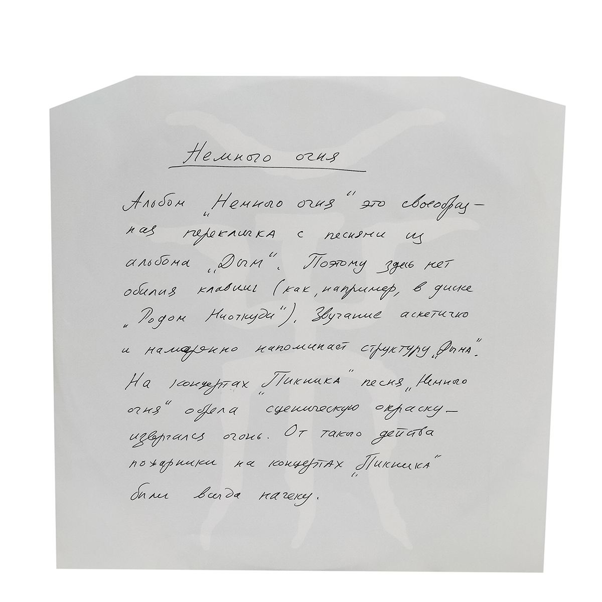 "Немного Огня" - студийный альбом советской и российской рок-группы Пикник, выпущенный в 1994 году. Альбом имел огромную популярность. В основном, благодаря двум хитам - "Твоё сердце должно быть моим" и "Немного огня". Именно последняя композиция стала одной из самых хитовых у группы.