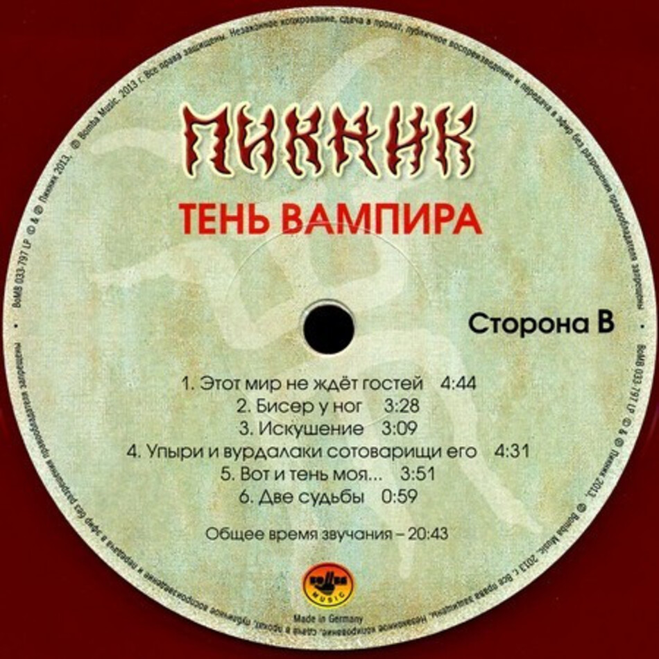 "Тень Вампира" - четырнадцатый студийный альбом советской и российской рок-группы Пикник, выпущенный в 2003 году. Альбом был записан при участии Вадима Самойлова из группы "Агата Кристи". Ранее в 2003 году Вадим Самойлов также записал кавер на песню "Я невидим" для сборника "Трибьют. Пикник", посвященный группе.