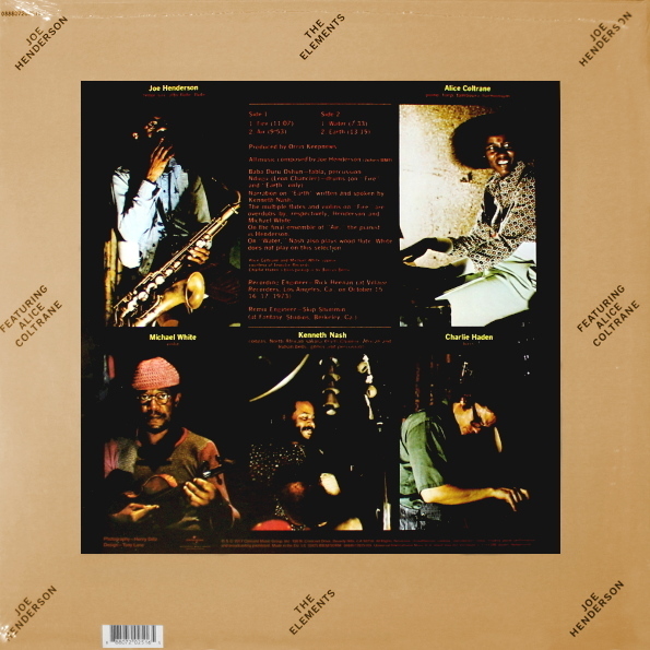 The Elements - переиздание альбома американского саксофониста Джо Хендерсона в сотрудничестве с Элис Колтрейн, выпущенного в 1973 году. Импровизация в четырех частях на темы Огонь, Воздух, Вода, Земля.