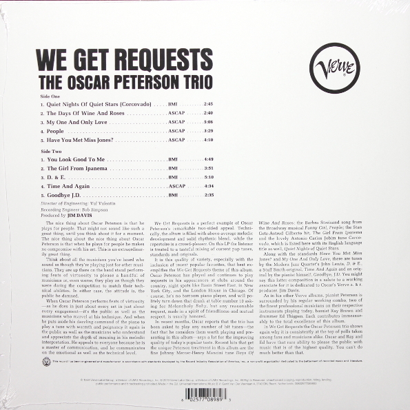 "TWe Get Requests" - переиздание студийного альбома квартета Оскара Питерсона, первоначально выпущенного в 1965 году.