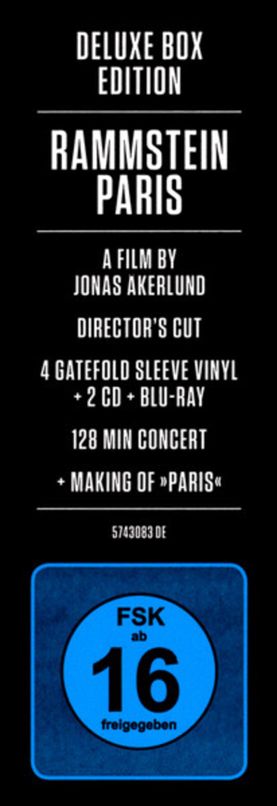 "Paris" - четвёртый концертный фильм и третий концертный альбом немецкой группы Rammstein, выпущенные в 2017 году. Для фильма были полностью сняты концерты 6 и 7 марта 2012 года. Сцены были смонтированы из фрагментов, записанных во время репетиций перед туром. Каждое шоу снималось 30 камерами перед 17 000 зрителей каждый вечер в Париже. Перед выходом в прокат фильм был показан трижды: на Каннском кинофестивале (11 мая 2016 года), в кинотеатре CinemaxX в Кёльне (11 августа 2016 года) и на Берлинском фестивале авангардных фильмов (14 февраля 2017 года). Официальная мировая премьера фильма состоялась 16 марта 2017 года в кинотеатре "Volksbühne" в Берлине. Присутствовали все участники группы, а также режиссёр Йонас Окерлунд.