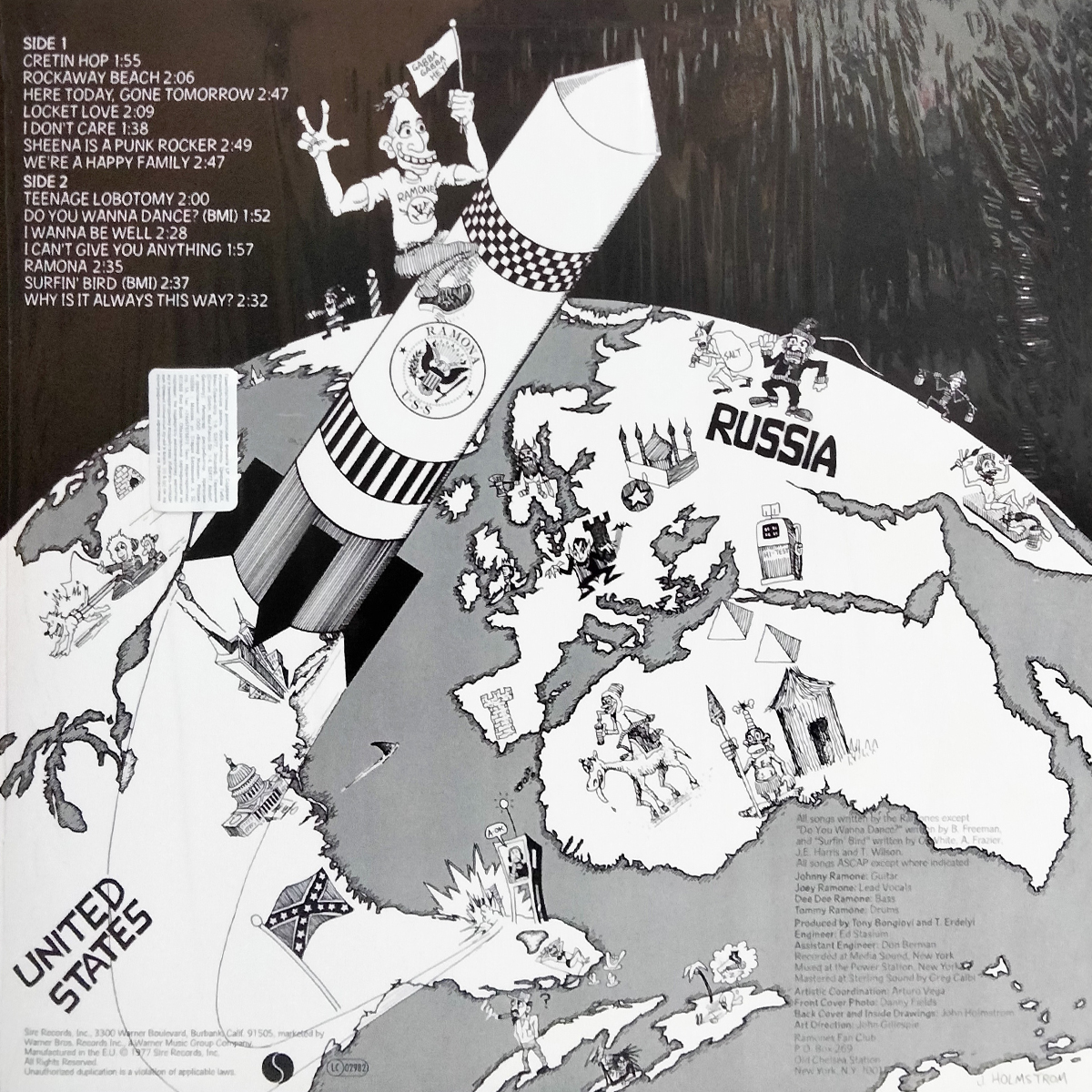 "Rocket To Russia" - третий студийный альбом 1977 года американской панк-рок-группы Ramones. Летом 1977 года был как раз пик жанра панк-рока, многим панк-группам были предложены контракты на запись. Почти все треки на альбоме содержали в текстах юмор, а в музыкальном стиле было больше влияния серф-рока, многие песни имели минималистичную структуру. В 2003 году альбом занял 105 место в рейтинге "500 величайших альбомов всех времён" журнала Rolling Stonе. В американском чарте Billboard 200 он достиг 49-й позиции. Последний альбом группы с участием Томми Рамона в качестве ударника группы.