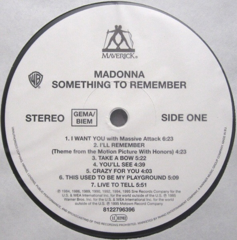 "Something To Remember" - сборник американской певицы и автора песен Мадонны, первоначально выпущенный в 1995 году. Одноименная песня стала саундтреком к фильму "Dick Tracy" в 1990 году. Сборник включает в себя все самые знаменитые на то время песни певицы и три новые композиции, включая трек с группой Massive Attack. В 2000 году в мире было продано 8 миллионов экземпляров.