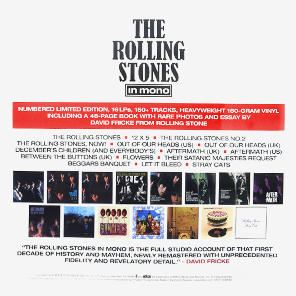 "The Rolling Stones In Mono" - дискография британской рок-группы The Rolling Stones, вышедшая в 2016 году. Бокс-сет содержит студийные альбомы The Rolling Stones 60-х годов в моно-формате. Некоторые альбомы в издании представлены в британской и американской версиях. Также релиз дополнен новой компиляцией "Stray Cats", состоящей из бисайдов и неальбомных треков того же периода.