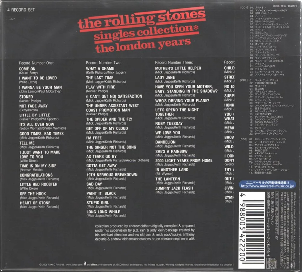 Японское лимитированное ремастированное бокс-сет издание на 26 Mini LP CD в упаковках диджислив кроме тройного сборника синглов в Стерео и Моно звучании. К боксу прилагаются карточки в фольгированной бумаги, необходимые для создания пазла-обложки альбома "Satanic Majesties". Открытый бокс, все диски запечатаны в конверты с клапаном.