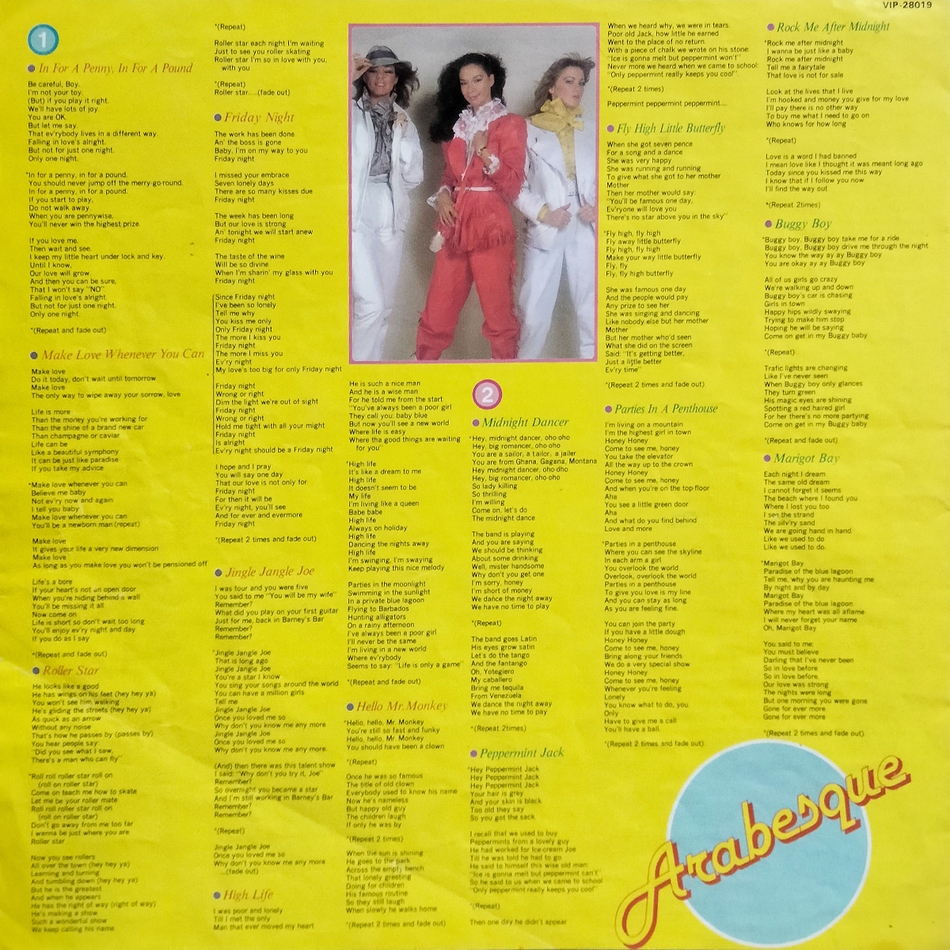 "Greatest Hits" - сборник лучших хитов группы Arabesque, выпущенный в 1981 году. Содержит такие треки как "In For A Penny, In For A Pound", "Midnight Dancer", "Friday Night" и многие другие. Релиз был выпущен к японскому концертному туру группы.