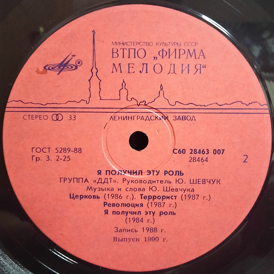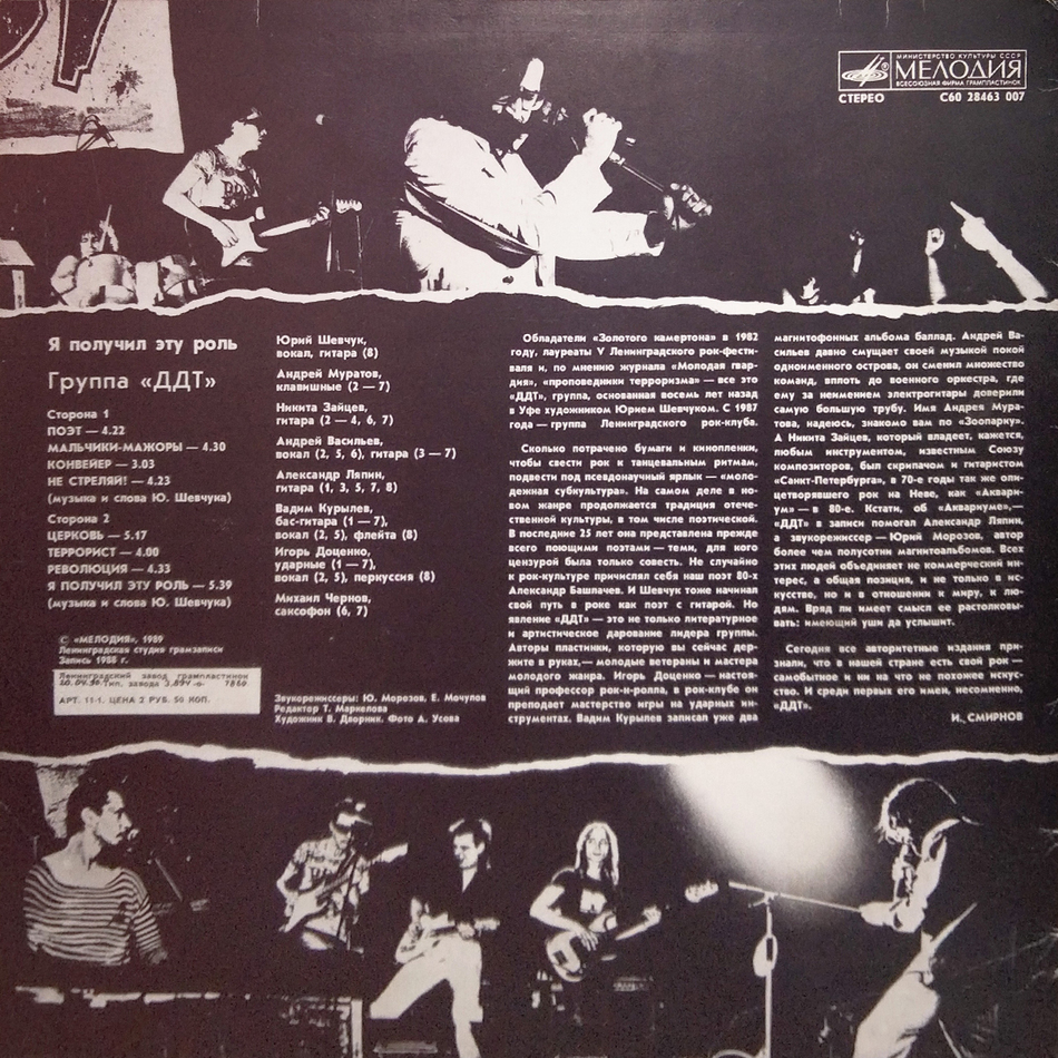 "Я Получил Эту Роль" - пятый студийный альбом советской и российской рок-группы DDT, выпущенный в 1989 году. Это первый альбом ленинградского состава группы и первый легально выпущенный альбом группы. В последующие несколько лет альбом разошёлся небывалым для того времени тиражом в два с половиной миллиона экземпляров. Запись 1988 года.