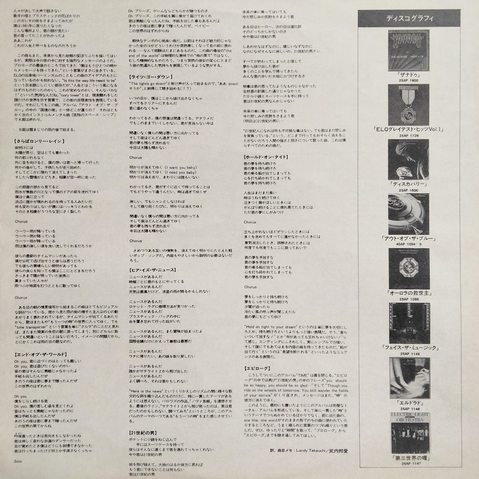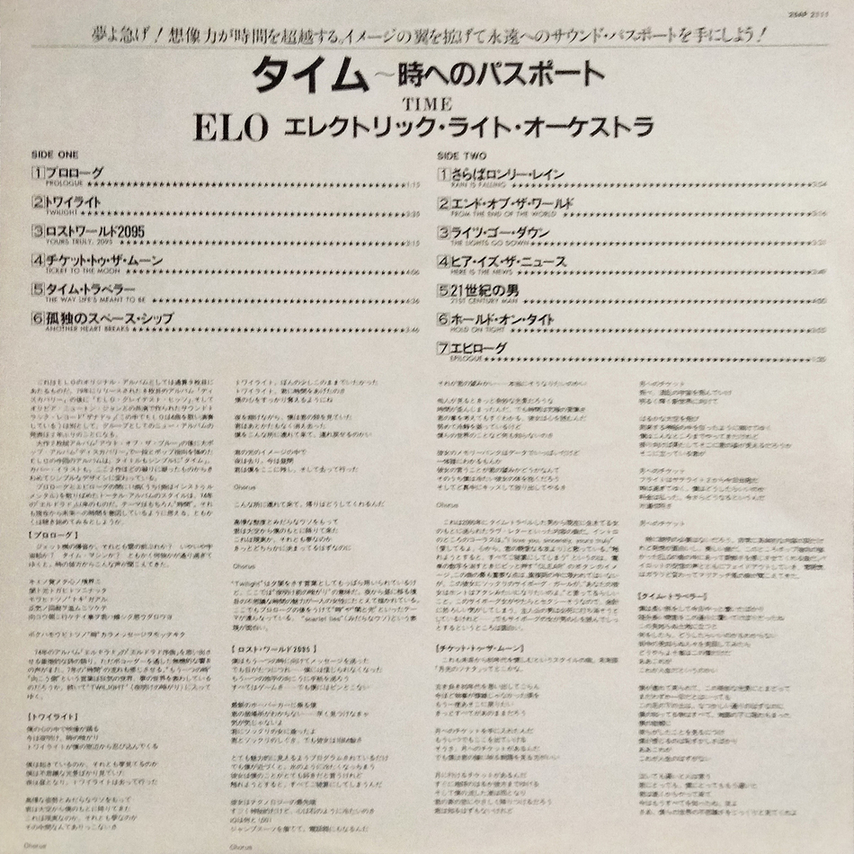 "Time" - студийный альбом британской группы Electric Light Orchestra, выпущенный в 1981 году. В отличие от двух предыдущих альбомов группы ("Discovery" и "Xanadu"), написанных под влиянием стилей поп и диско, "Time" относится к излюбленному стилю Electric Light Orchestra - прогрессивному року. В его песнях рассказывается история человека, попавшего в 2095 год и не имеющего возможности возвратиться домой.