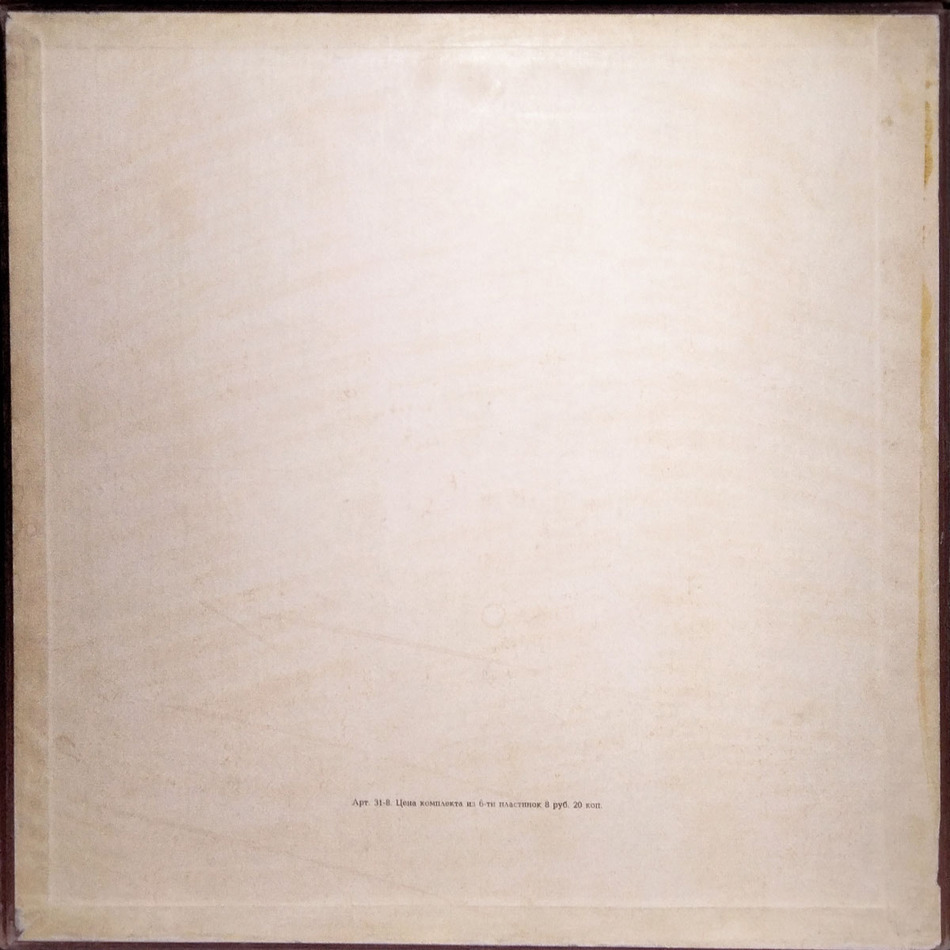Советское бокс-сет издание на шести виниловых пластинках черного цвета. Содержит 4-страничную вкладку. Открытый бокс в превосходном состоянии, винил в состоянии близком к идеальному. Лейблы синие.