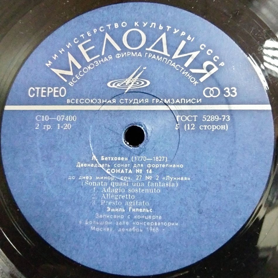Записано с концерта в Большом зале Консерватории. Москва, декабрь 1968 года