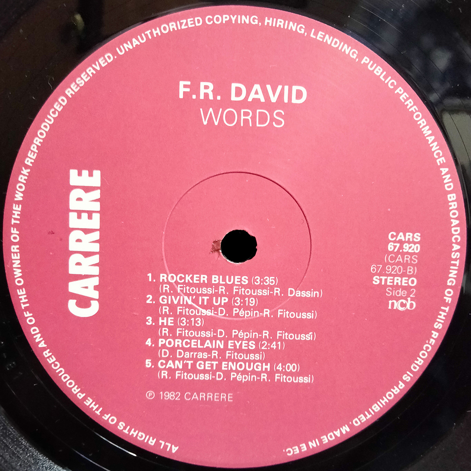 F. R. David (настоящее имя - Эли Робер Фитусси) - французский музыкант, певец, автор песен тунисского происхождения, исполняющий песни на английском языке. Один из первопроходцев жанра "евродиско".