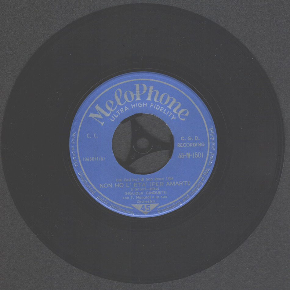 "Non Ho L'Eta (Per Amarti)" - сингл Джильолы Чинкетти, выпущенный в 1964 году. Релиз содержит два трека: "Non Ho L'Eta (Per Amarti)" и "Sei Un Bravo Ragazzo". Трек "Non Ho L'Eta (Per Amarti)" занял первое место на фестивале в Сан-Ремо в 1964 году. Аранжировка, дирижер - Франко Мональди. Оркестр - Оркестр Франко Мональди и Ла Суа.