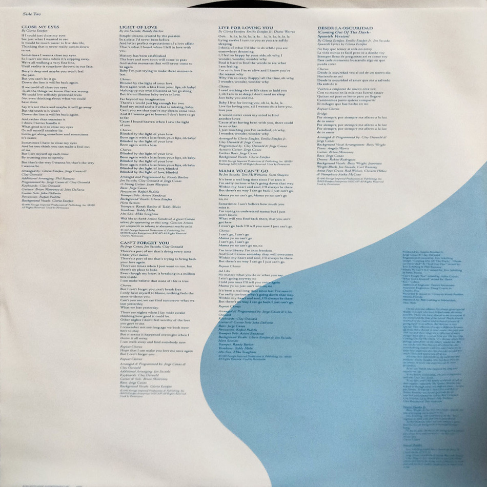 "Into The Light" - второй сольный студийный альбом американской исполнительницы Глории Эстефан, выпущенный в 1991 году. Альбом достиг пятого места в американском чарте Billboard 200, став её самым успешным альбомом в этом чарте. В США было продано более 2 миллионов экземпляров альбома "Into the Light". В альбом вошёл сингл "Coming Out of the Dark", занявший первое место в чарте Billboard Hot 100. Следующий сингл "Can't Forget You" достиг второго места в чарте Billboard Adult Contemporary.