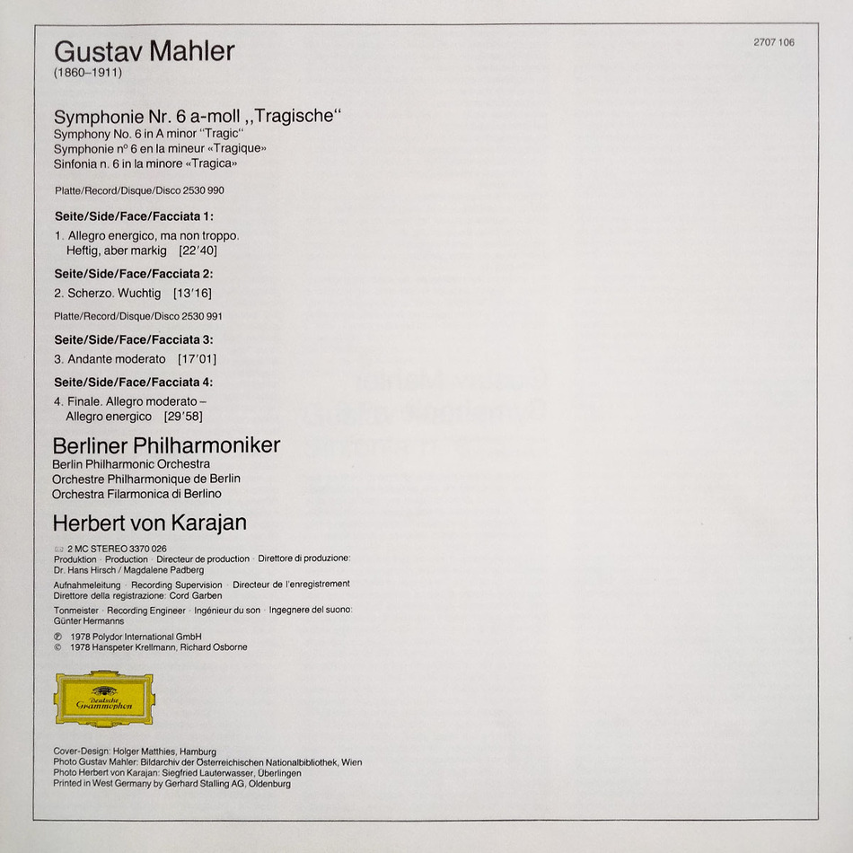 "Gustav Mahler: 6. Symphonie" - запись Шестой симфонии Густава Малера в исполнении Берлинского филармонического оркестра под управлением Герберта фон Караяна, первоначально выпущенная в 1978 году. Продюсеры – Ханс Хирш, Магдалина Падберг.