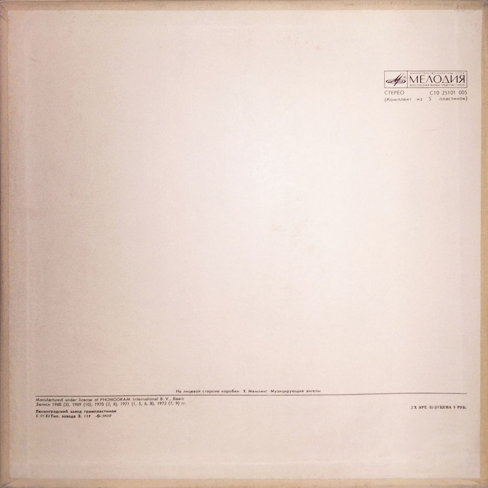 Советское бокс-сет переиздание 1987 года на пяти виниловых пластинках черного цвета. Содержит 4-страничную вкладку. Открытый бокс в превосходном состоянии. Винил в идеальном состоянии. Лейблы белые.