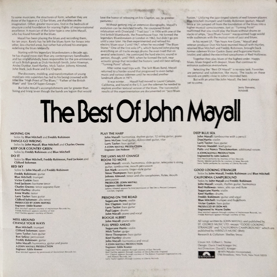 "The Best Of John Mayall" - сборник лучших хитов Джона Мейолла, выпущенный в 1973 году. Содержит такие треки как " Play The Harp", " Moving On", " Mess Around" и многие другие.