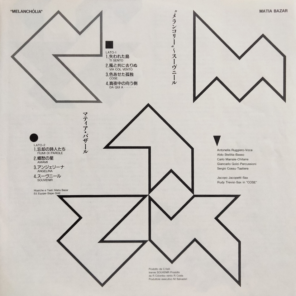 "Melancholia" - девятый студийный альбом итальянской поп-группы Matia Bazar, выпущенный в 1985 году. Продюсеры Селсо Валли и Маурицио Сальвадори. Звукорежиссер - Роберто Коста.
