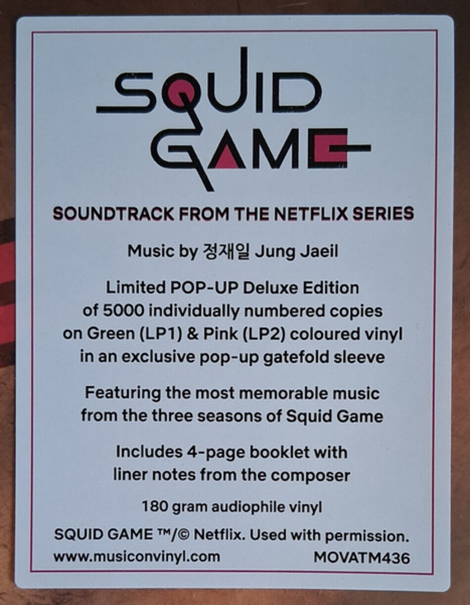 "Squid Game (Soundtrack From The Netflix Series)" - саундтрек Чон Чжэ-иль к сериалу "Игра в кальмара", выпущенный в 2025 году. Хотя Чжэ-иль написал большую часть музыкальных фрагментов, позже он сотрудничал с Пак Мин-джу и Ким Сон-су (под сценическим псевдонимом "23") над дополнительной музыкой. Для этого винилового релиза Чон Джэ Иль эксклюзивно собрал лучшие моменты из трех сезонов "Игра в кальмара".