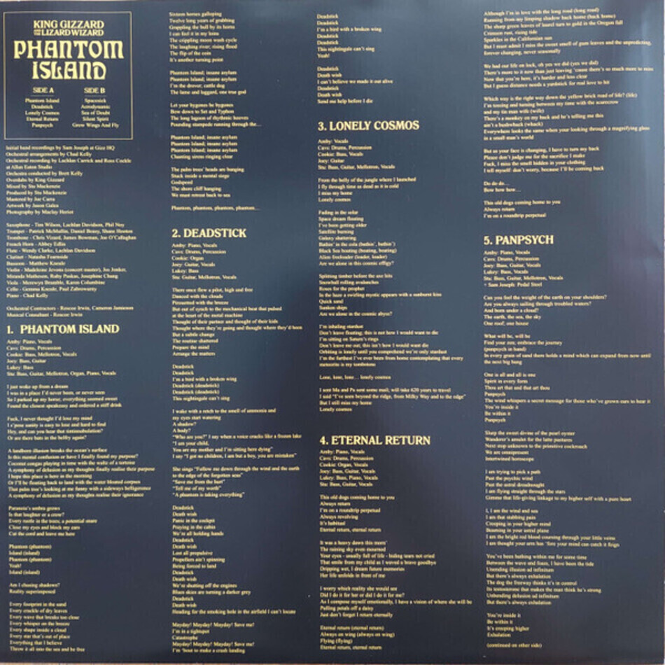 "Phantom Island" - двадцать седьмой студийный альбом австралийской рок-группы King Gizzard & The Lizard Wizard, выпущенный в 2025 году. Записанный одновременно с предыдущим альбомом "Flight b741" (2024), альбом "Phantom Island" продолжает развивать те же темы, но с более оркестровым звучанием. Объединяя свою фирменную энергию психоделического рока с масштабными оркестровыми аранжировками, King Gizzard отправляют слушателя в психологическое путешествие вглубь души, создавая свой собственный "призрачный остров" иллюзий, страхов и хаоса.