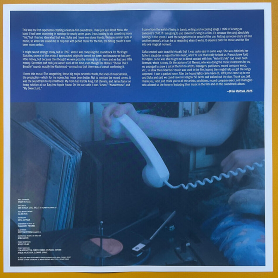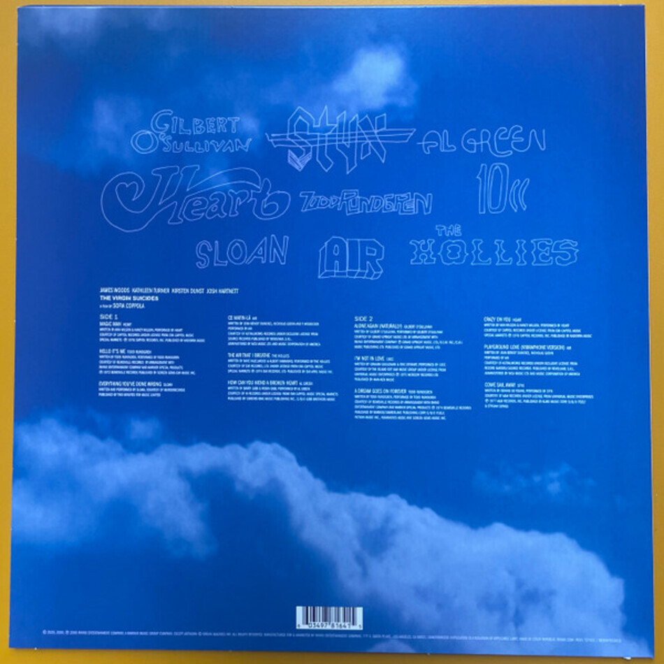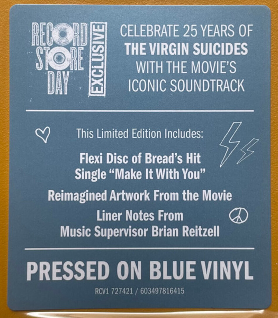 "The Virgin Suicide (Music From The Motion Picture)" - саундтрек к фильму "The Virgin Suicide", первоначально выпущенный в 2000 году. Релиз содержит классические рок- и поп-песни Тодда Рундгрена, Heart, Sloan, The Hollies, Эла Грина, Гилберта О'Салливана, 10cc и Styx, а также два трека от французского электронного дуэта Air. Саундтрек достиг 34-го места в британском чарте альбомов и был номинирован на премию BRIT Awards 2001 в категории "Лучший саундтрек".